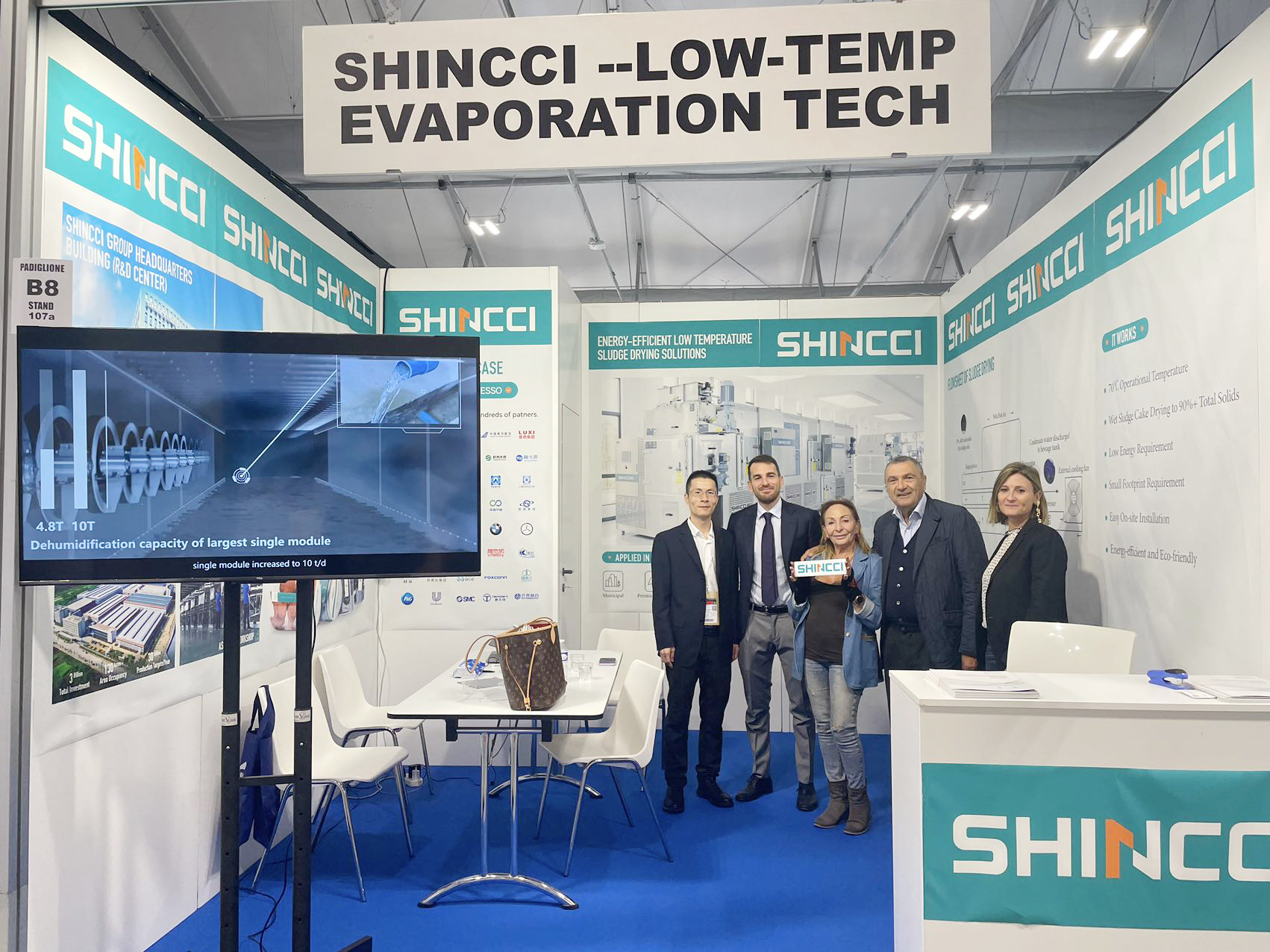 近日,2025意大利国际环保水处理展(Ecomondo )在里米尼圆满落幕。作为低温技术领域的领先企业,晟启集团精彩亮相展会,向全球客商集中展示了公司在污泥干化领域的前沿技术成果,进一步巩固了公司在国际环保科技领域的专业地位与技术影响力。