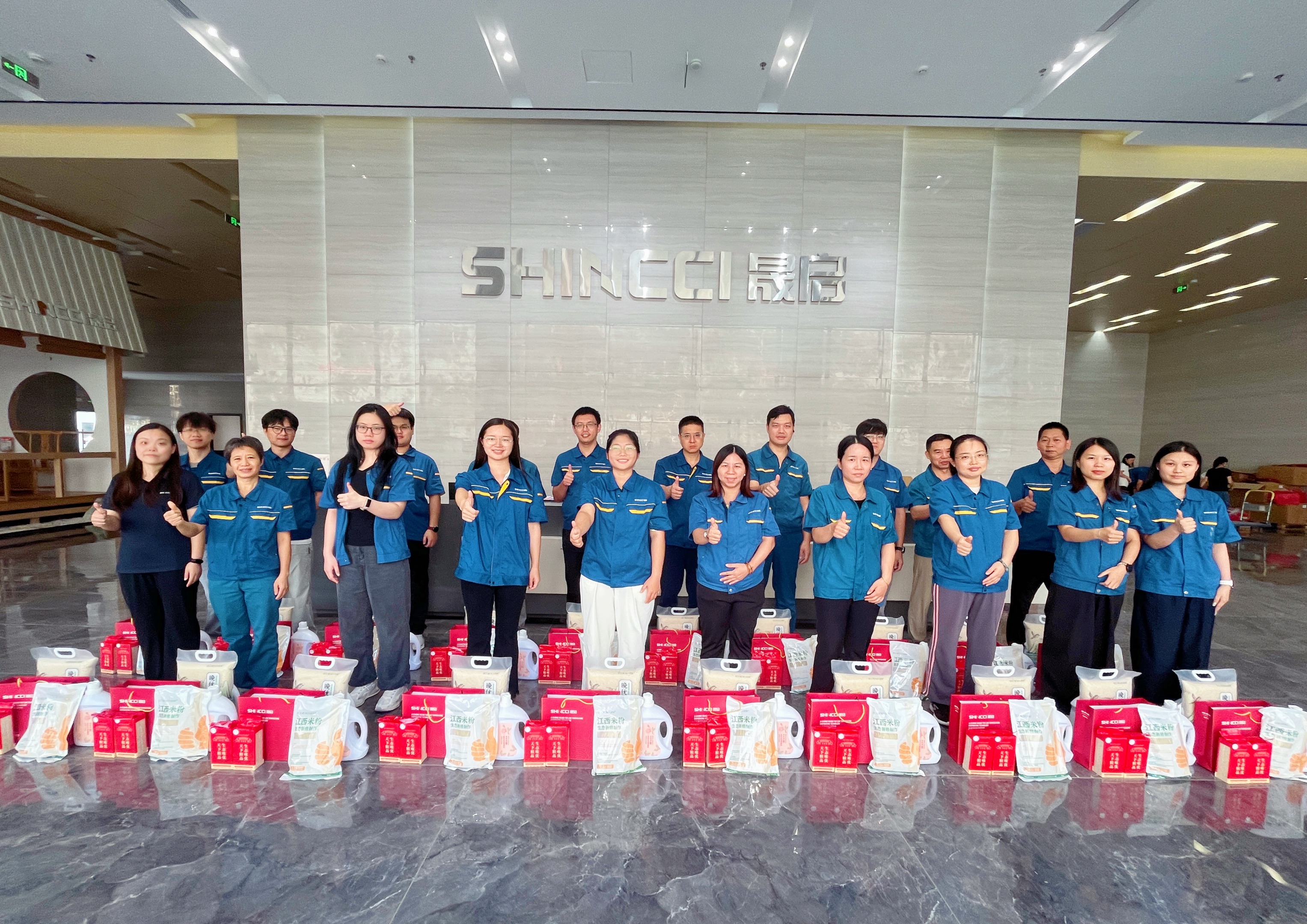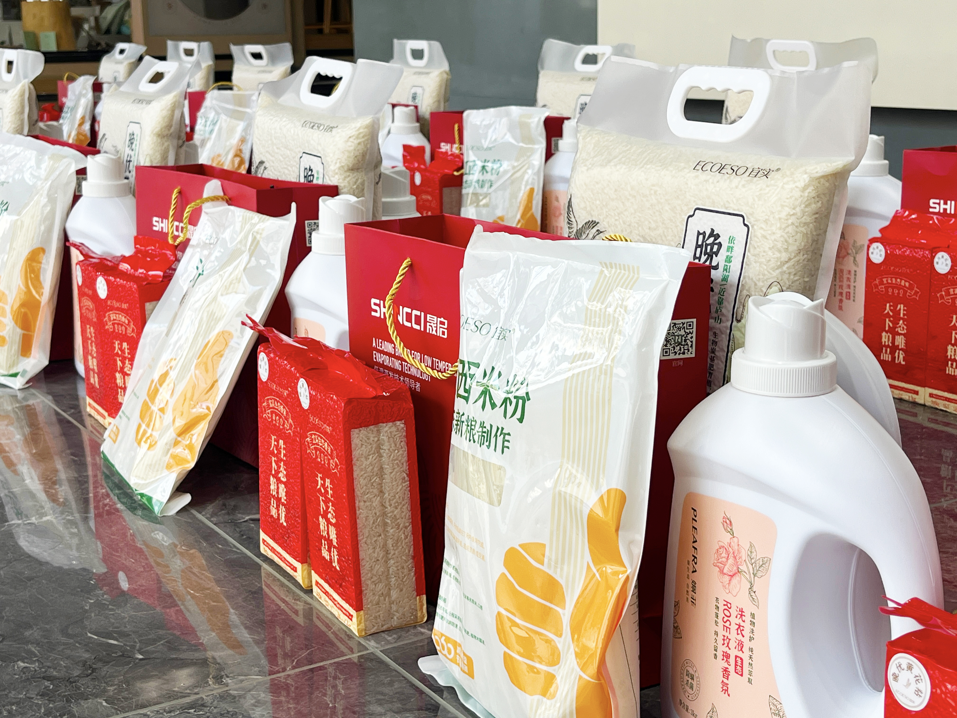 一份份礼品,不仅蕴含着团圆美满的寓意,更承载着公司对员工日常努力的认可与感谢。在公司前台,礼品整齐陈列——精致的中秋月饼礼盒,搭配生态大米、江西米粉、洗衣液等实用好物,每一份都饱含着温暖与关怀。